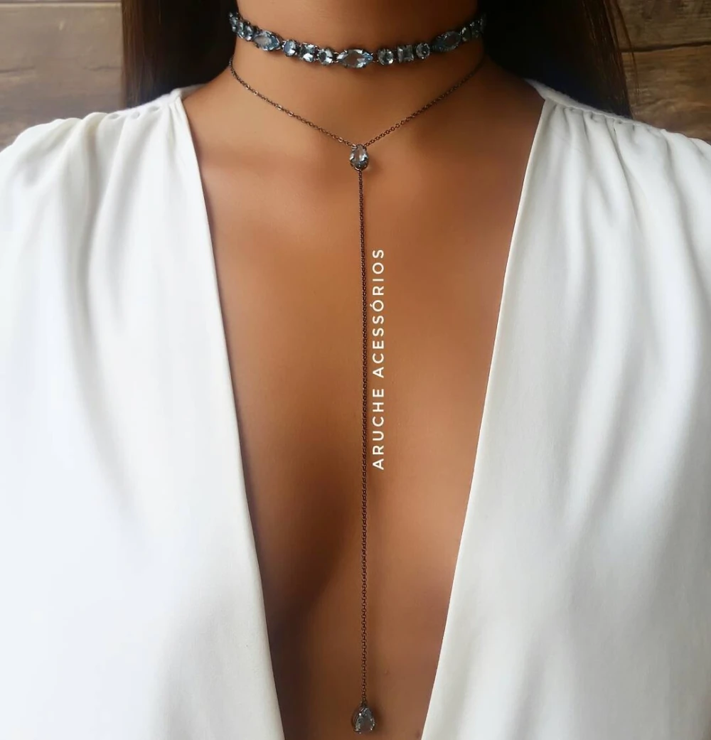 ?Choker em ródio negro com zircônia água marinha R$ 259.90. ?Colar gravatinha em ródio negro com zircônia água marinha R$ 139.90. ?COMPRAS: www.arucheacessorios.com.br. Dúvidas: 19.99148.0682. ?Parcelamos em até 6x sem juros e enviamos para todo o Brasil. #semijoiasdeluxo #brincos #colares #jewelry #luxo #tendência #mulherespoderosas #modaparamulheres #modaparameninas #joias #joiasdeluxo #colar #festas #semijoias #garantia #euuso #arucheacessorios
