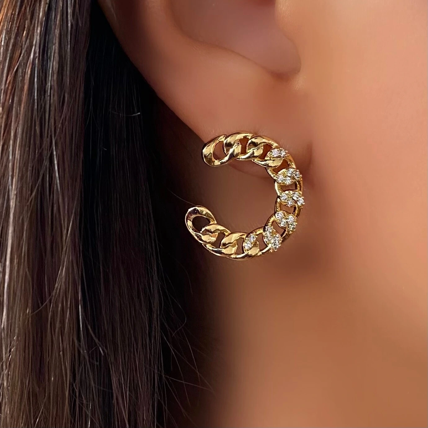 BRINCO NO BANHO OURO 18K, COM ZIRCÔNIA CRISTAL.
