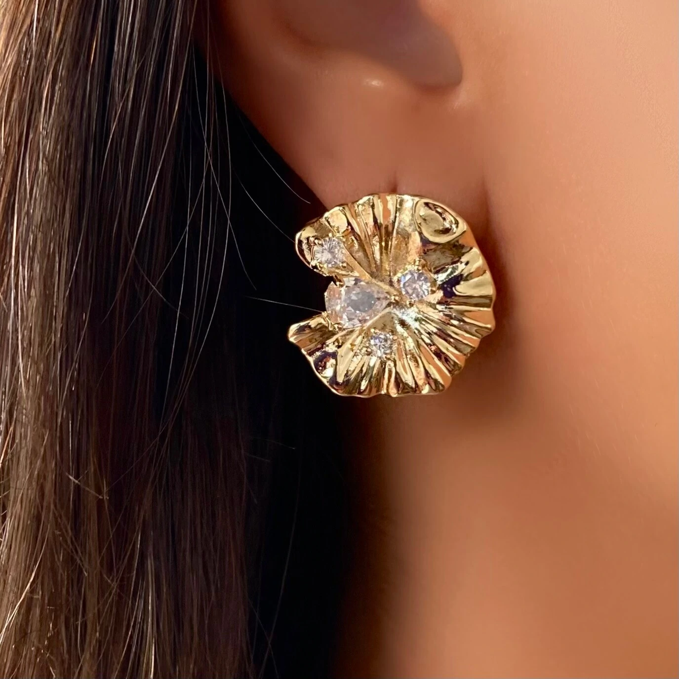 BRINCO NO BANHO OURO 18K, COM ZIRCÔNIA.