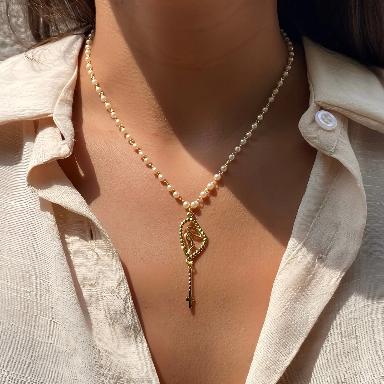 COLAR NO BANHO OURO 18K, COM PÉROLA SINTÉTICA.
