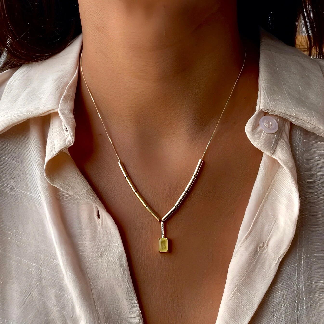 COLAR NO BANHO OURO 18K, COM ZIRCÔNIA CITRINO E ZIRCÔNIA CRISTAL.