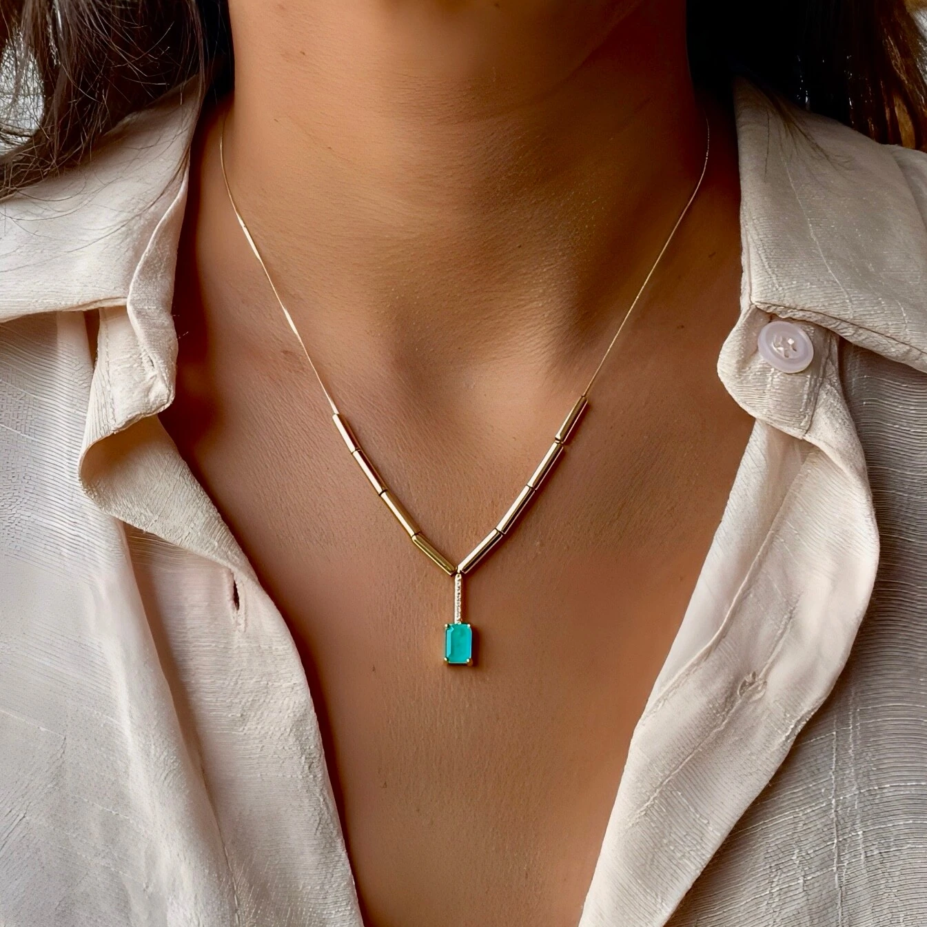 COLAR NO BANHO OURO 18K, COM ZIRCÔNIA TURMALINA E ZIRCÔNIA CRISTAL.
