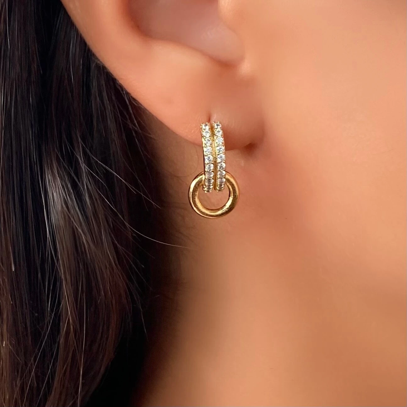BRINCO NO BANHO OURO 18K, COM ZIRCÔNIA.